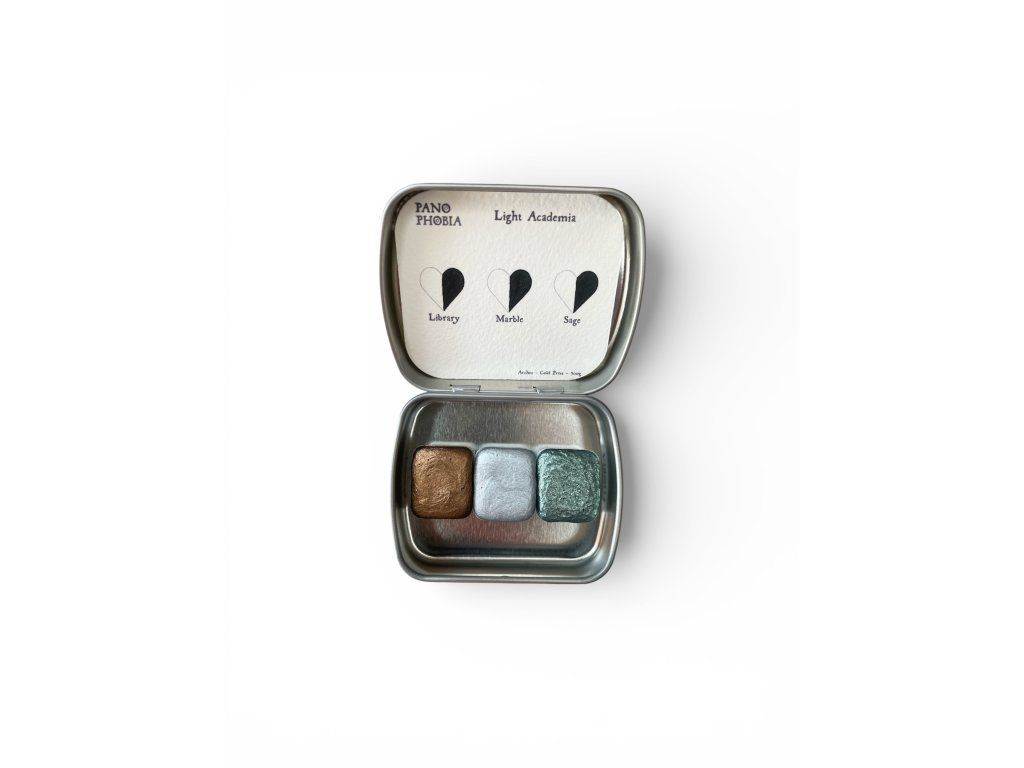 Paletka inspirovaná estetikou Light Academia obsahuje 3 ručně vyráběné akvarelové barvy ze stejnojmenné kolekce.
