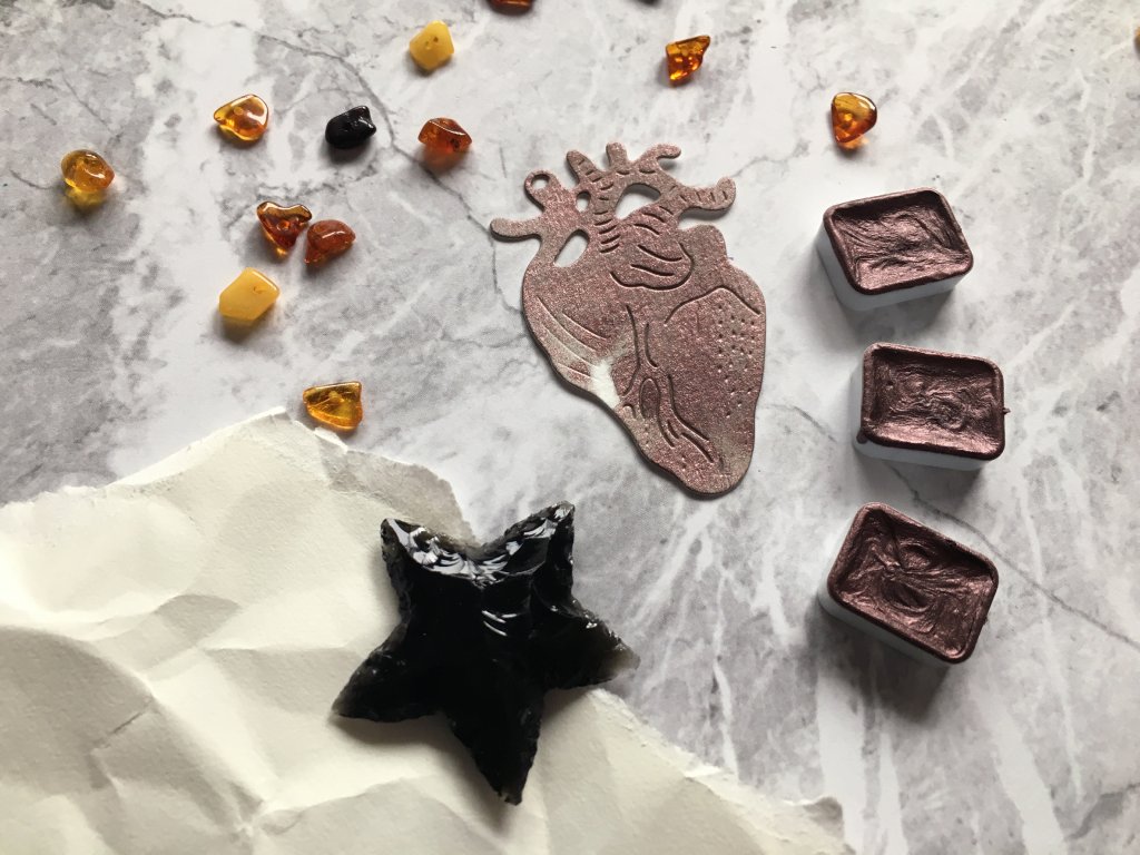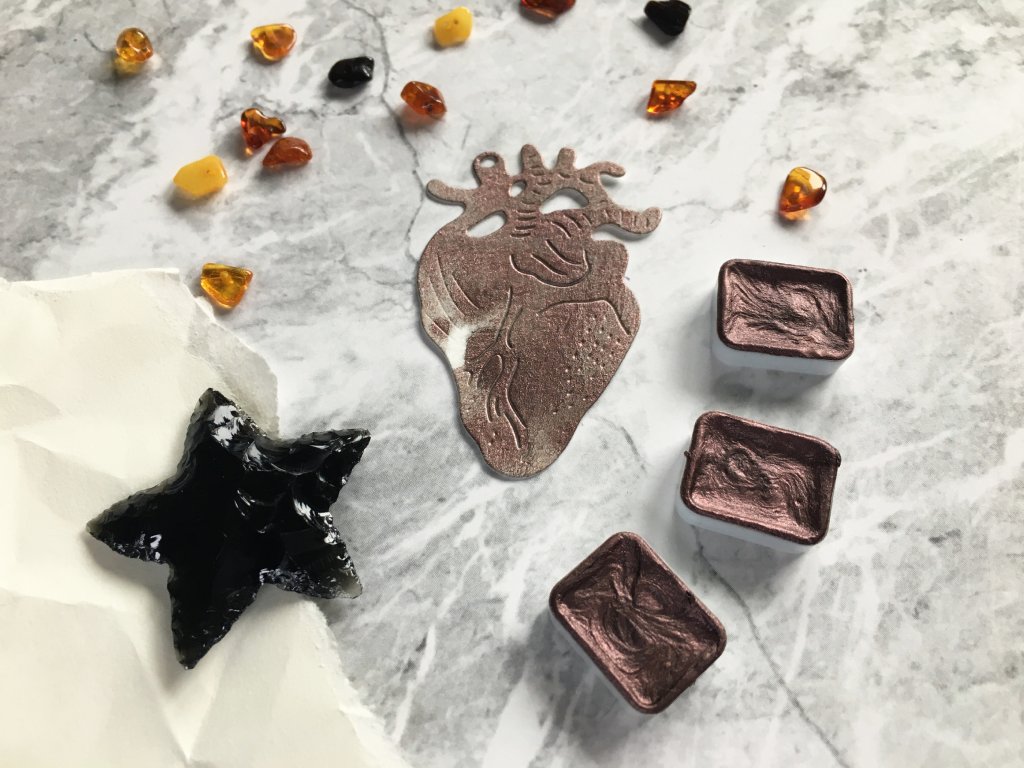 Ručně vyrobená třpytivá akvarelová barva v pánvičce.