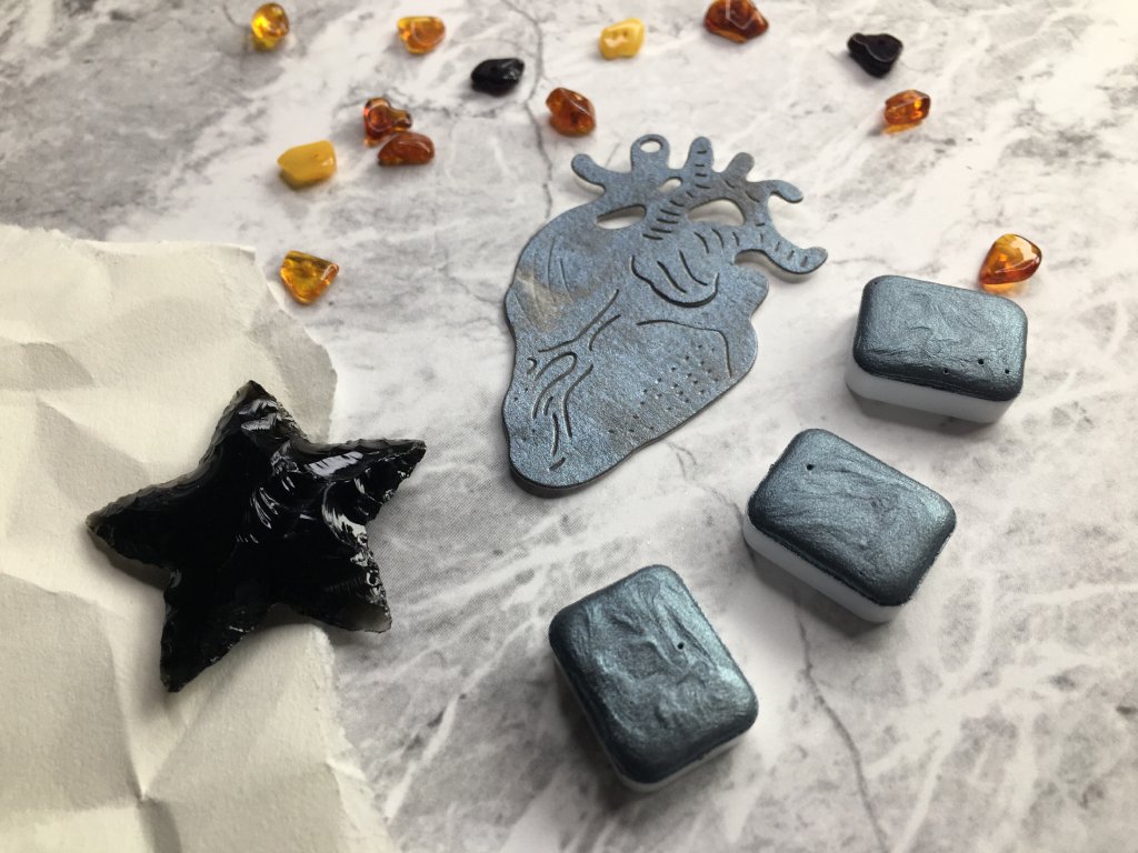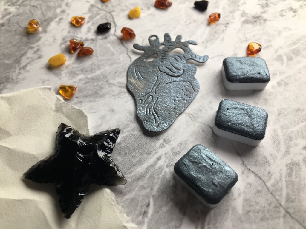 Ručně vyrobená třpytivá akvarelová barva v pánvičce.