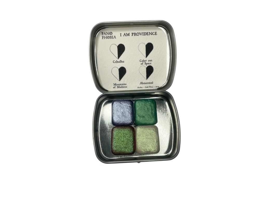 Objevte temnou nádheru kosmického hororu s akvarelovou paletkou inspirovanou tvorbou H. P. Lovecrafta. Tato akvarelová paletka obsahuje 4 barvy, které evokují děsivou atmosféru Lovecraftových příběhů. Každý odstín je pečlivě navržen tak, aby vyvolával pocity strachu, tajemna a nevysvětlitelného.
